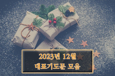 하나님께서 허락하신 아름다운 한 해였던 2023년도 흘러갑니다. 하루하루는 힘들고 지난한 것 같지만 지나 보면 우리가 보지 못하고 느끼지 못했던 하나님의 풍성한 사랑이 가득했음을 알게 됩니다. 그동안 12월에 관련된 다양한 기도문을 한 곳에 모아 소개합니다. 불필요한 부분은 걷어내고 핵심적인 부분을 담았습니다. 전체 기도문은 하단의 2023년 대표기도문을 통해 확인하시기 바랍니다.